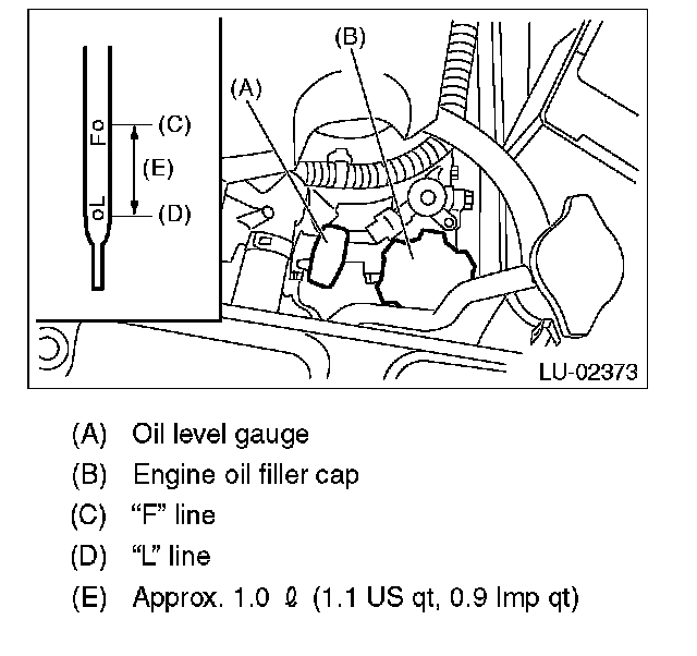 10) After the engine stops, recheck the oil level. If necessary, add engine oil up to the "L" line on level gauge.