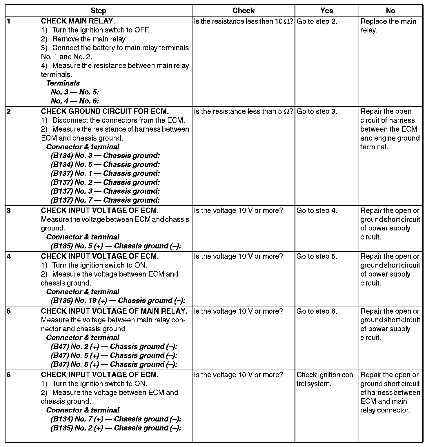 CHECK POWER SUPPLY AND GROUND LINE OF ENGINE CONTROL MODULE (ECM)