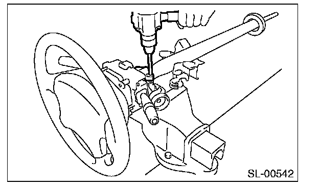 3. Secure the steering column in a vise. Remove the bolt with a drill.