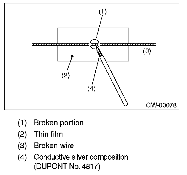3. Apply the conductive silver composition (DUPONT No. 4817) to the broken portion.