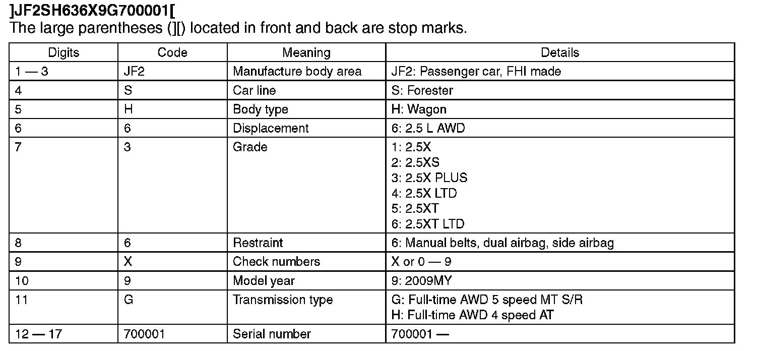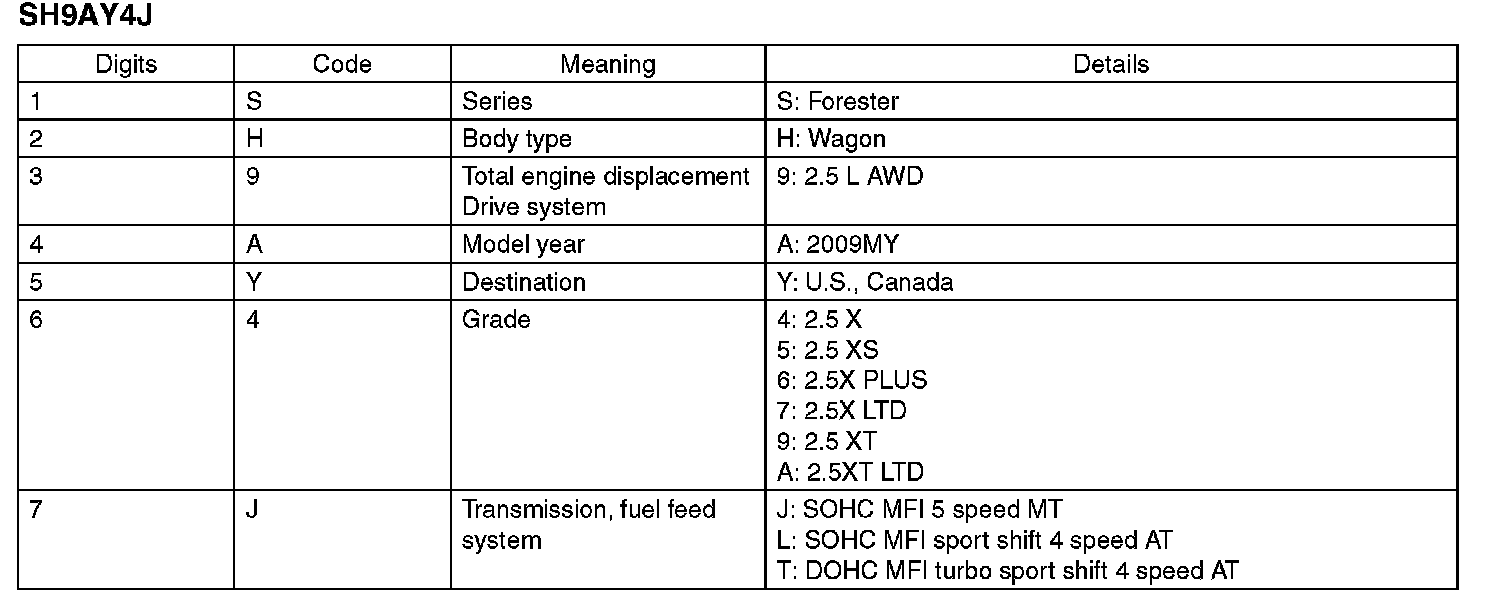 The meaning of the V.I.N. is as follows:
