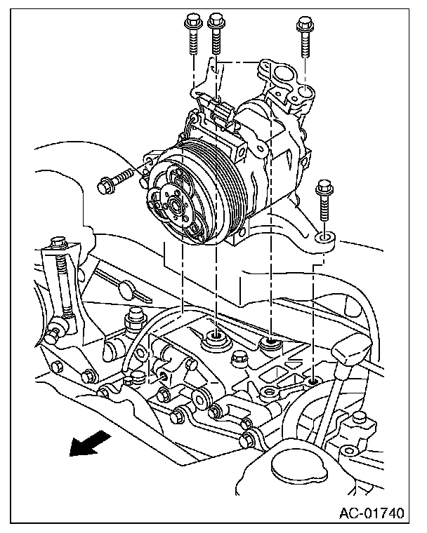 2. Replace the O-rings on low-/high-pressure hoses with new parts, then apply compressor oil.