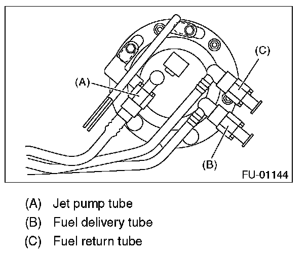 7. Disconnect the quick connector, then disconnect the fuel delivery tube, fuel return tube, and jet pump tube.
