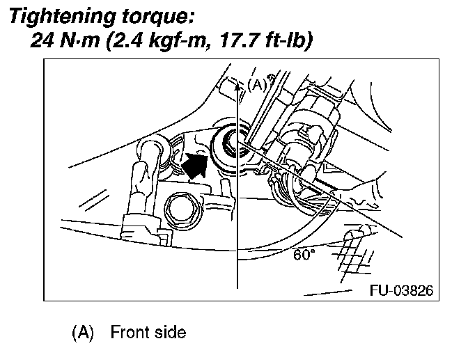 NOTE: The portion of the knock sensor cord that is pulled out must be positioned at a 60 ° angle relative to the engine rear.