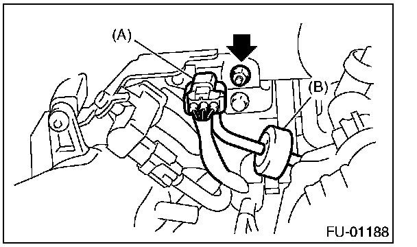 3. Disconnect the connector from manifold absolute pressure sensor (A), and remove the filter assembly (B) from intake manifold.