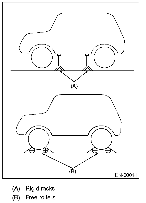 2. Lift up the vehicle using a garage jack and place it on rigid racks, or drive the vehicle onto free rollers.