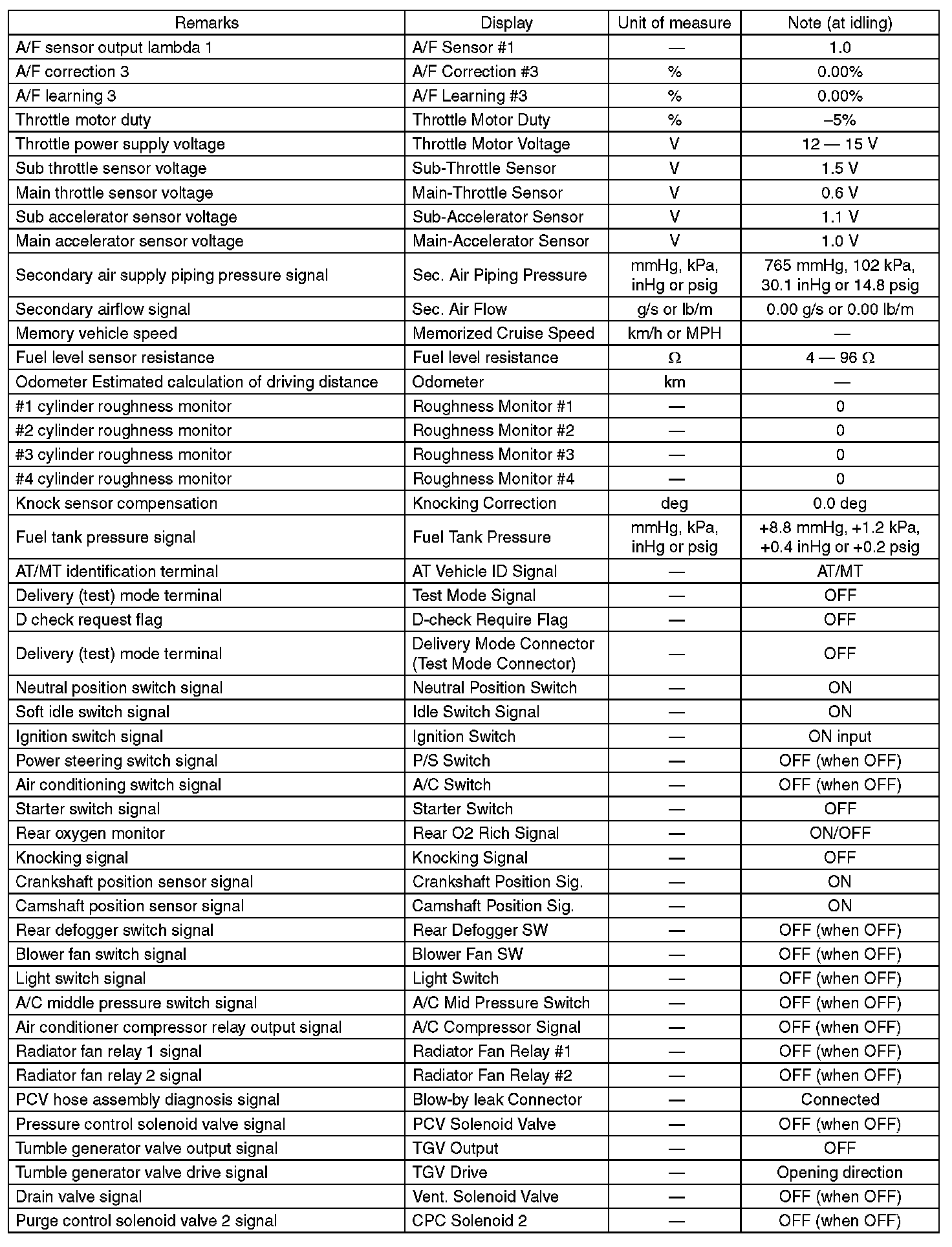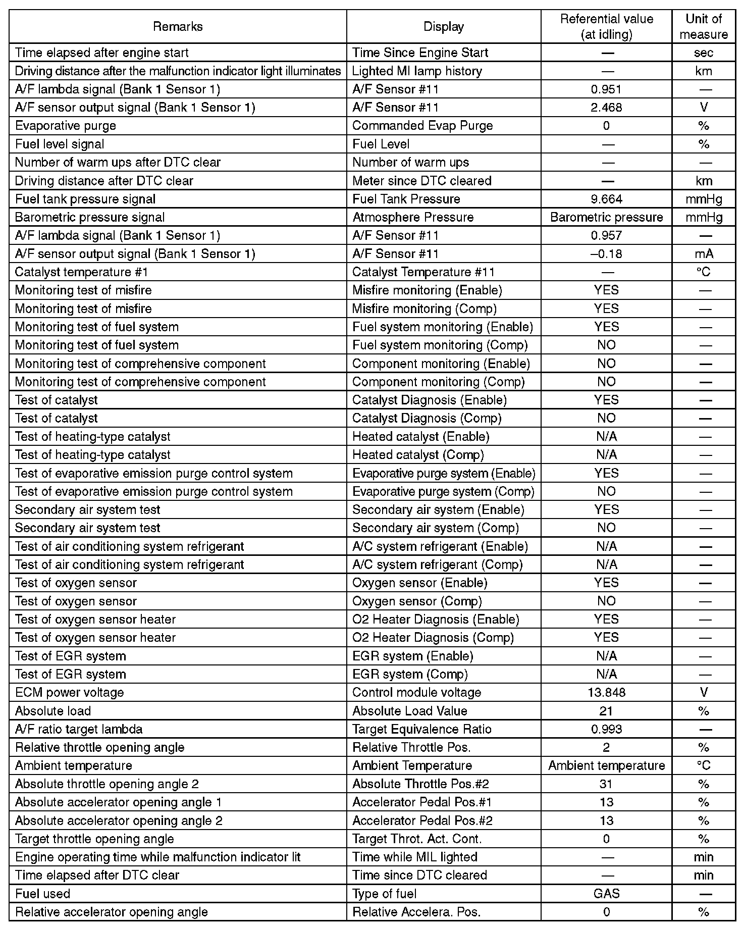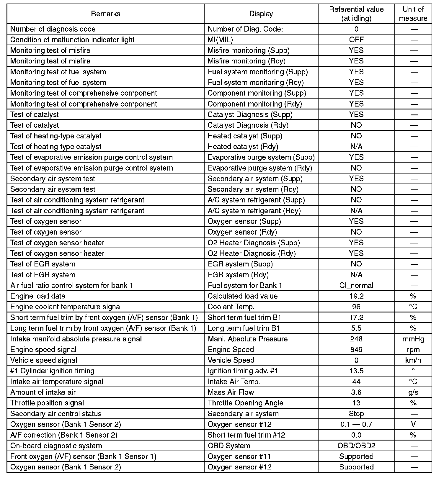 3. READ CURRENT DATA FOR ENGINE (OBD MODE)