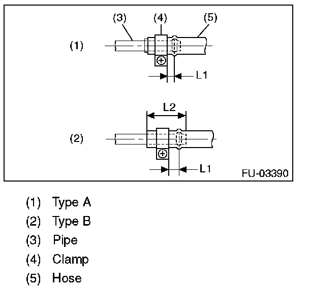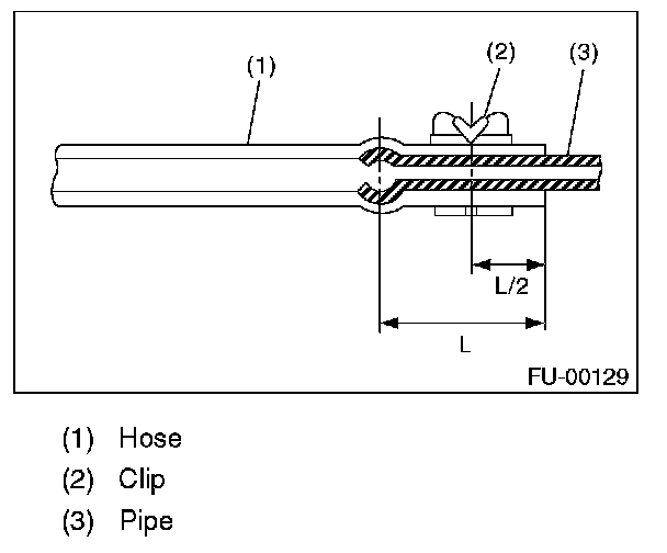 Connect the fuel delivery hose and fuel return hose to the pipe with an overlap of 20 to 25 mm (0.79 to 0.98 in).