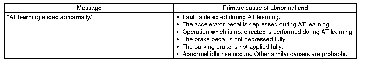 During AT learning in progress, SPORT indicator light in the combination meter starts flashing at 2 Hz and the learning operation starts. The following message is displayed on the screen when the SPORT indicator light turns off.