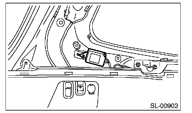 3. Remove the bolt, disconnect the connector and remove the keyless entry control module.