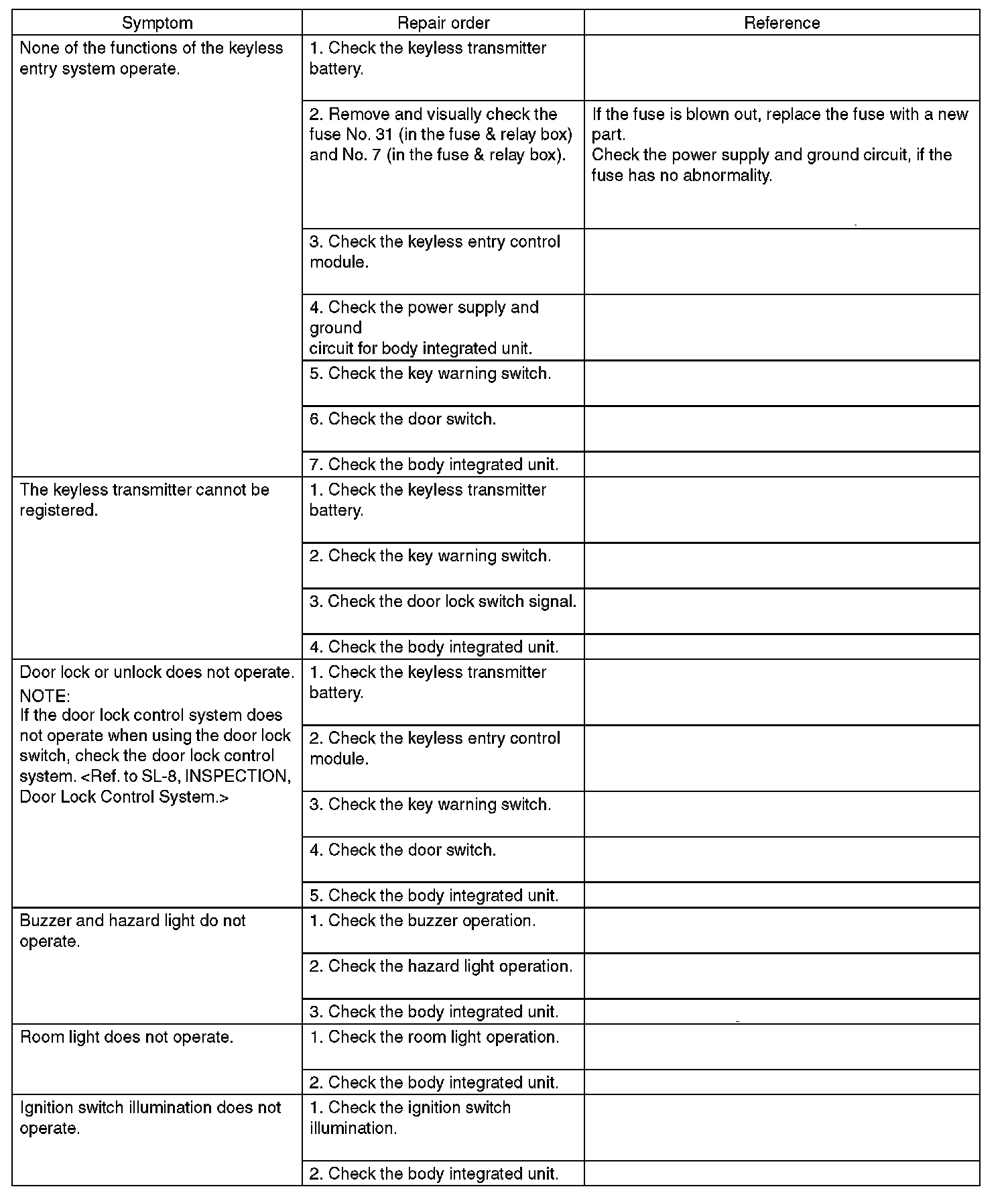 Refer to the "CHECK DOOR LOCK SWITCH" of the Door Lock Control System. Testing and Inspection
