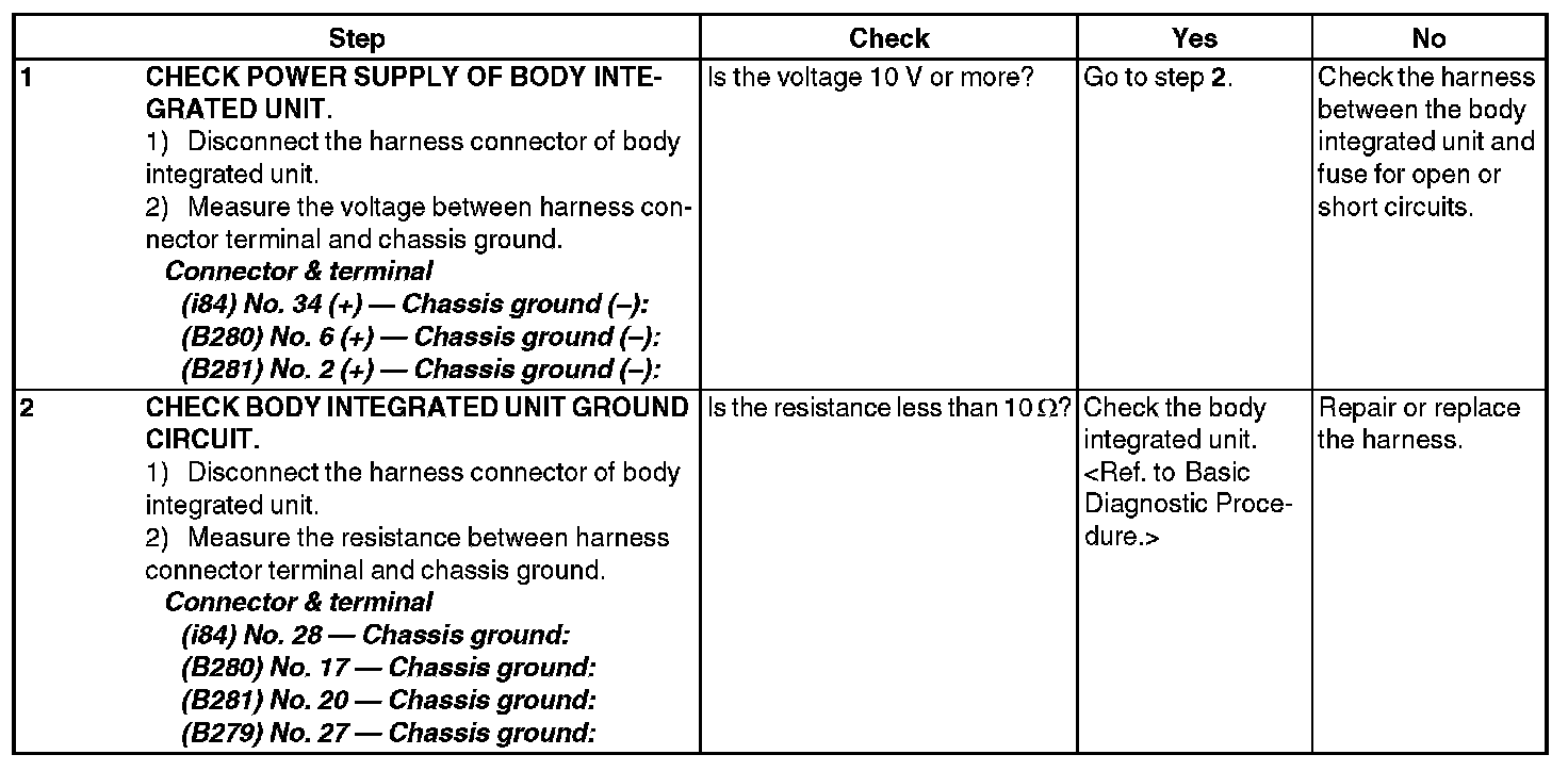 4. CHECK BODY INTEGRATED UNIT POWER SUPPLY AND GROUND CIRCUIT