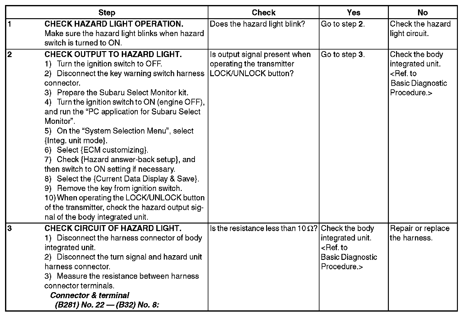 8. CHECK HAZARD LIGHT OPERATION
