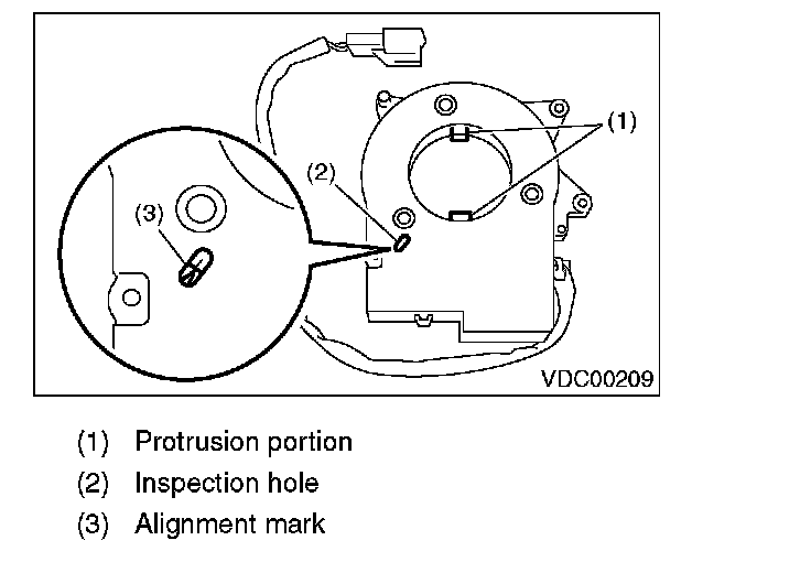 10) Turn the protrusion portion of new steering angle sensor to match the alignment mark of inspection hole.