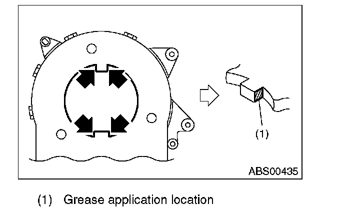 12) Apply the grease provided with the new part on the four locations of the protrusion on the steering angle sensor.