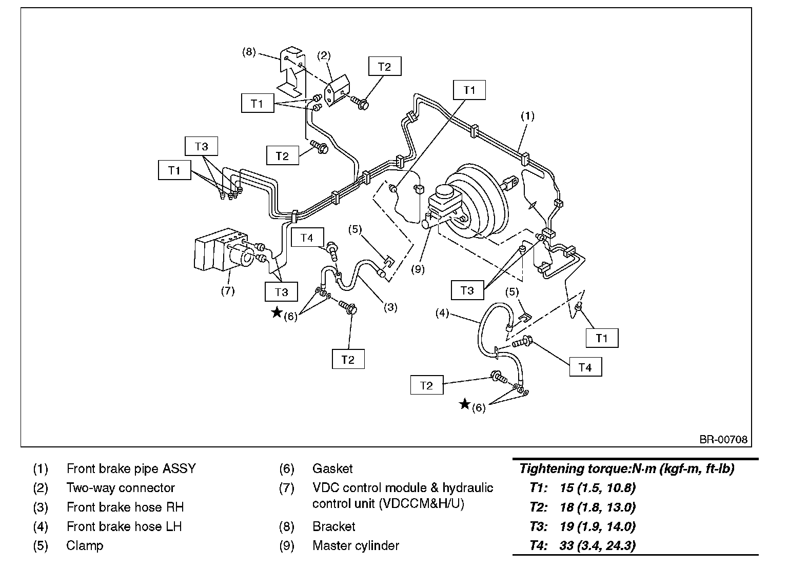 FRONT BRAKE PIPES AND HOSES: