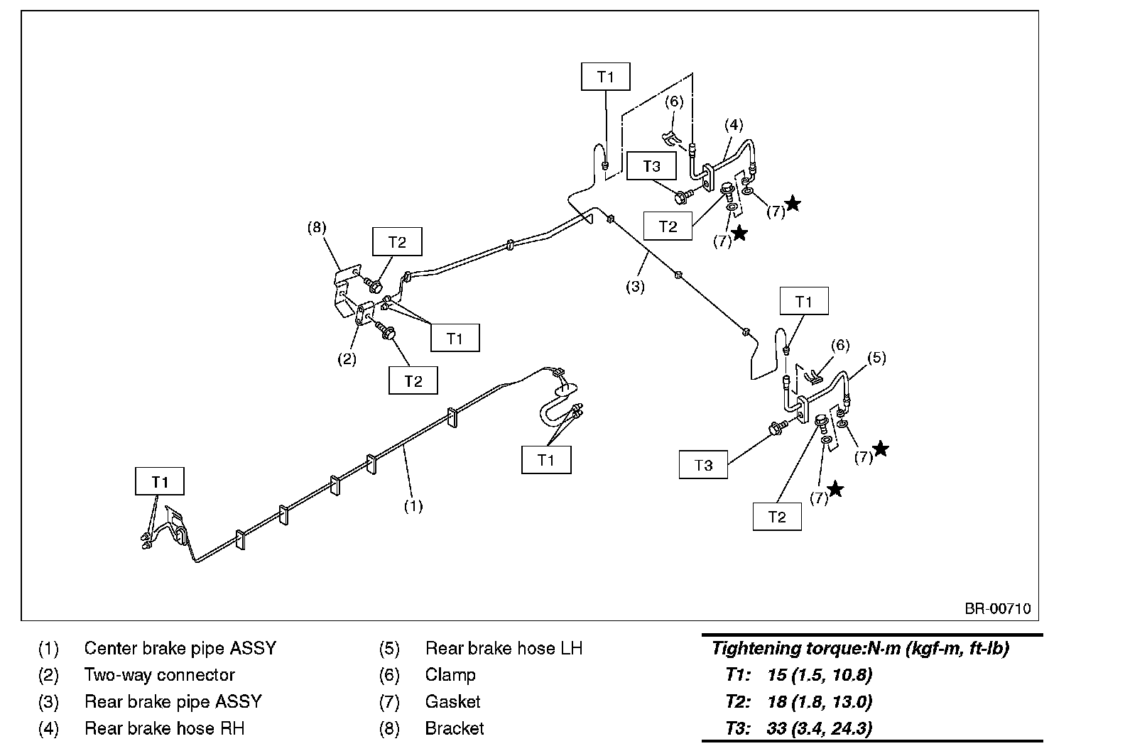 CENTER AND REAR BRAKE PIPES AND HOSES: