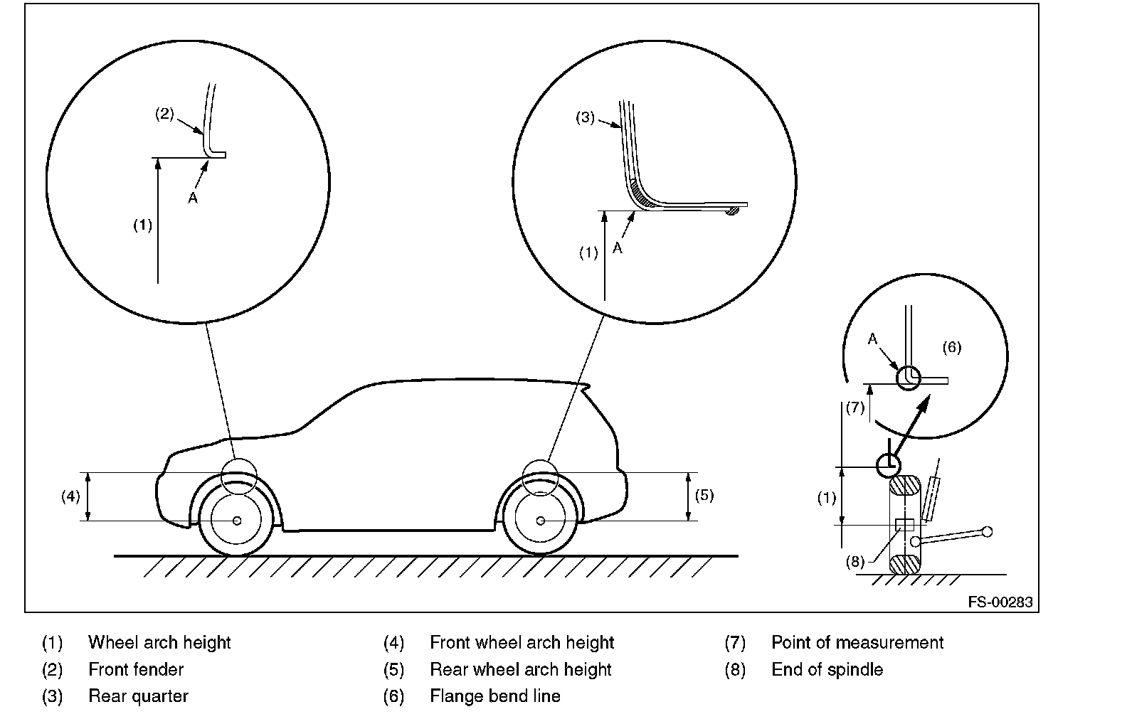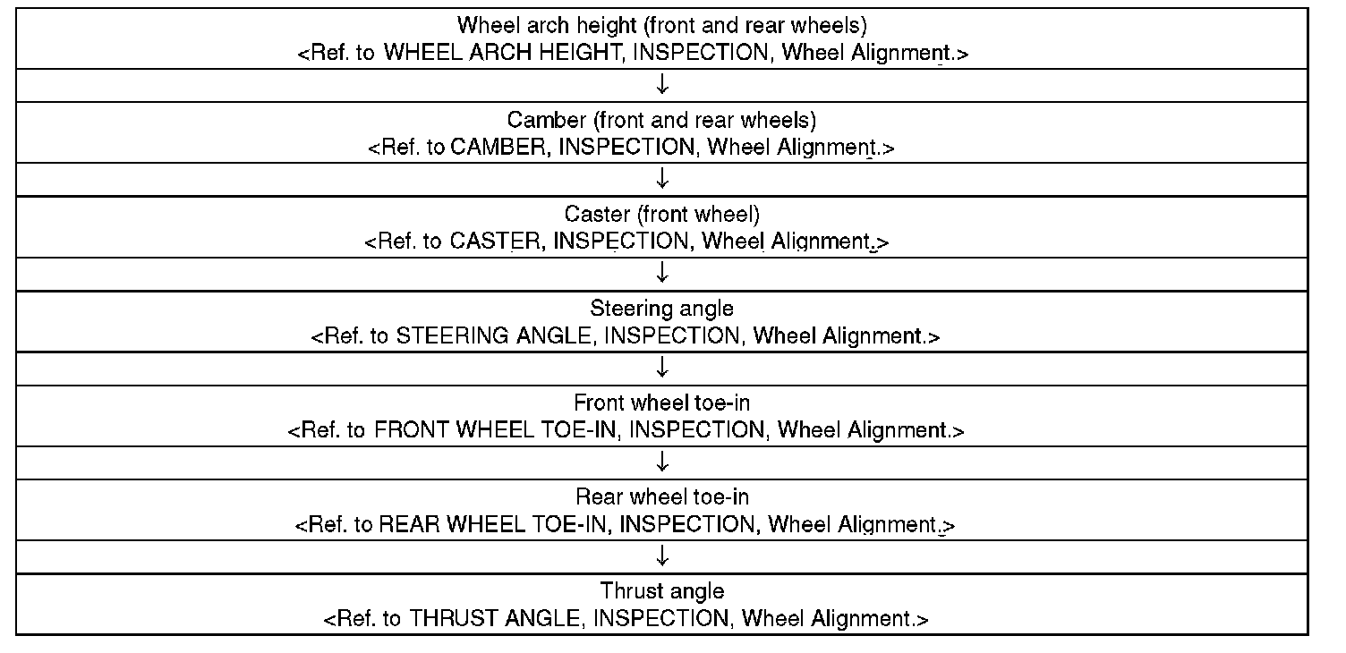 Check, adjust and measure the wheel alignment in accordance with the procedures indicated in the figure.