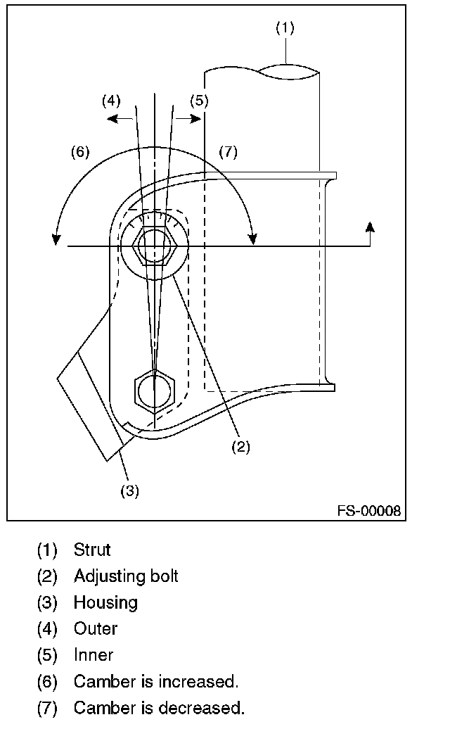 3) Turn the camber adjusting bolt so that the camber is set at specification.