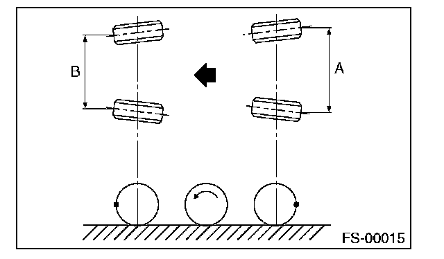 2) Place a mark at the center of both left and right tires, and measure distance "A" between the marks.