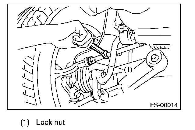 2) Loosen the left and right side steering tie-rod lock nuts.