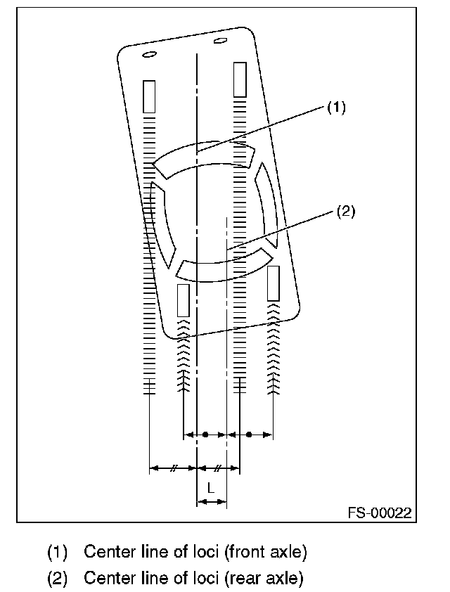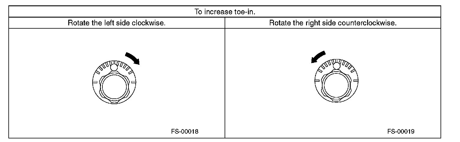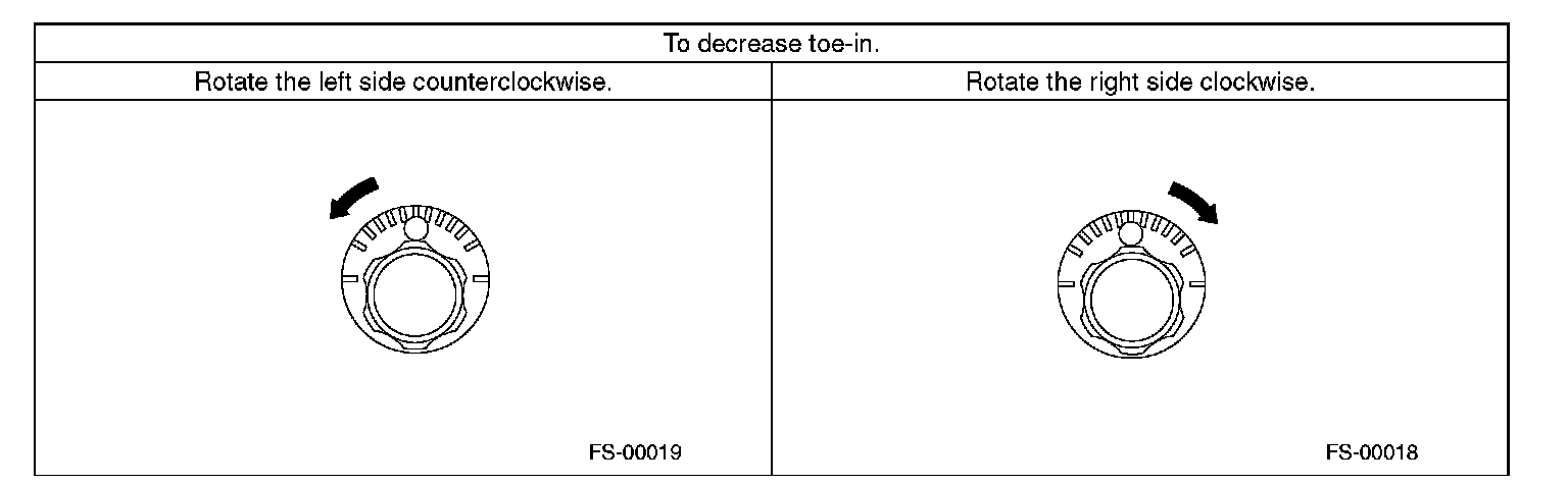 2) When one rear wheel is adjusted in a toe-in direction, adjust the other rear wheel equally in toe out direction, in order to make the thrust angle adjustment.