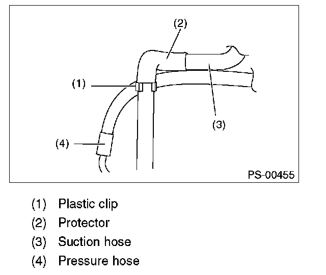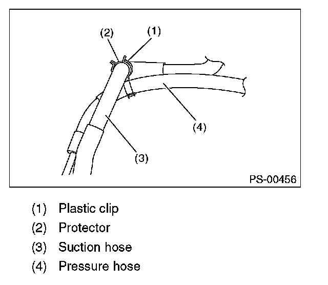 15) Finally, check the clearance between pipes or hoses as shown in the figure indicated in "General Diagnostic Table".