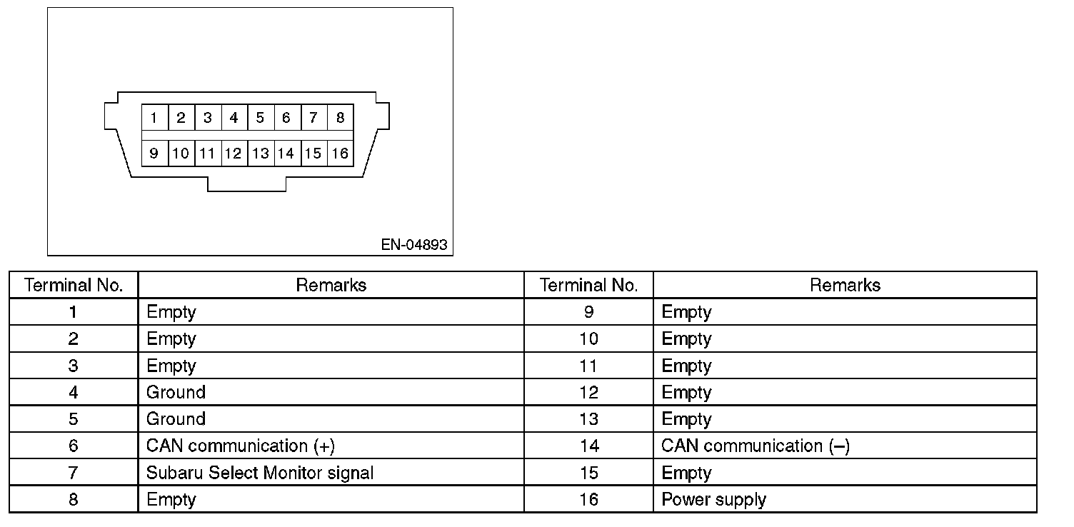 NOTE: This connector is used for Subaru Select Monitor.
