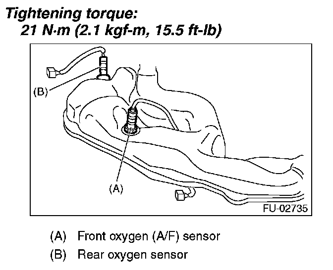 CAUTION: When removing the front oxygen (A/F) sensor, wait until exhaust pipe cools, otherwise it will damage the exhaust pipe.