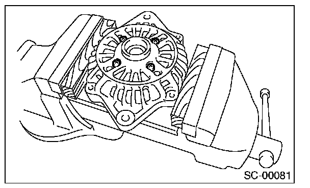 CAUTION: When holding the rotor with a vise, place aluminum plates or wooden pieces on the vise jaws to prevent rotor from damage.