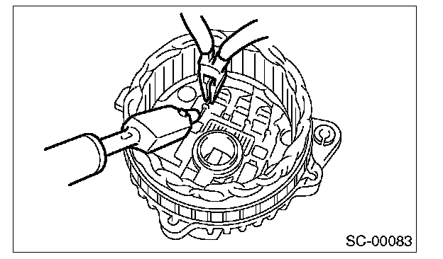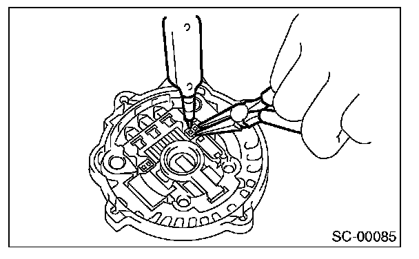 CAUTION: The rectifier is easily damaged by heat. Do not allow a 180 - 270 W soldering iron to contact the terminals for 5 seconds or more at a time.
