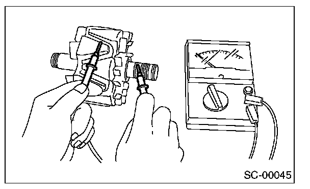 CAUTION: There is the possibility of damaging the diodes if a mega-tester (used to measure high voltages) or a similar measuring instrument is used. Never use a mega tester or equivalent for this test.