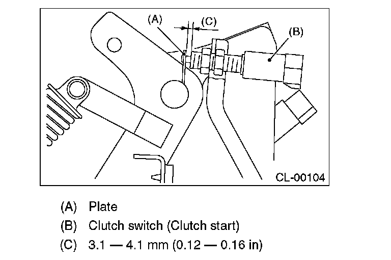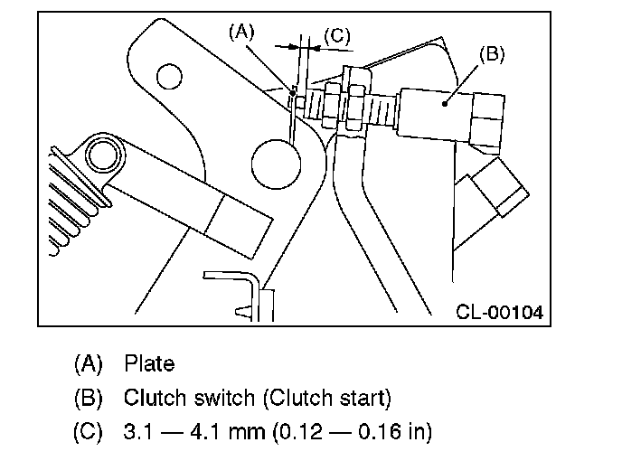 3) Adjust the gap of the clutch pedal plate and the clutch switch to be 3.1 - 4.1 mm (0.12 - 0.16 in).