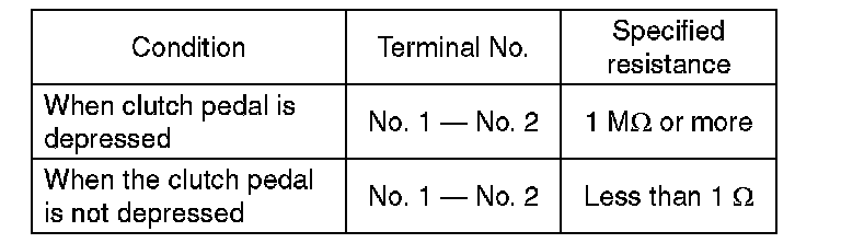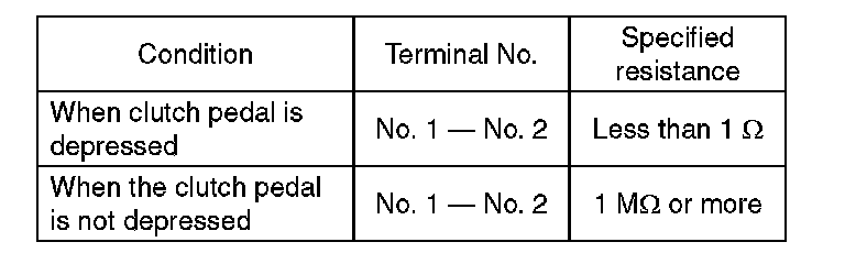 2) Check the clutch switch for continuity. If the resistance is not at the standard value, replace the switch.