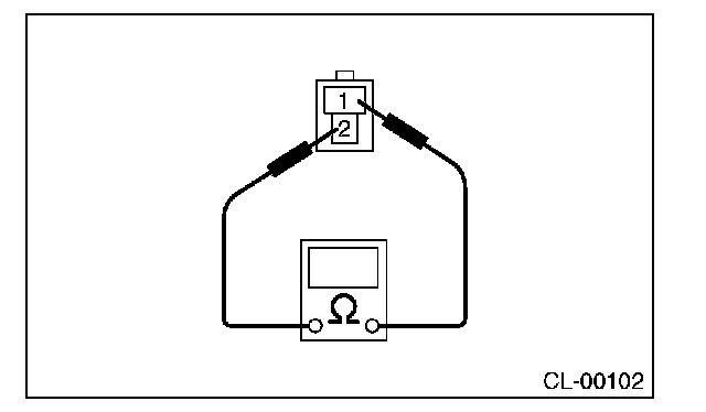 2) Measure the resistance between terminal 1 and 2 of the switch.