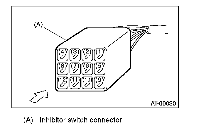 2) Check continuity in inhibitor switch circuits with the select lever moved to each position.
