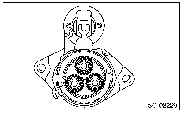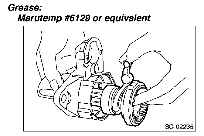 4. Assemble the overrunning clutch, internal gear assembly, shaft and shift lever as a single unit into the starter housing assembly.