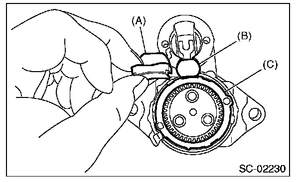 3. Pass stopper (B) through the shaft assembly, and attach snap ring (A).