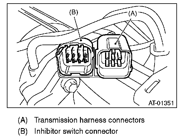 8) Insert the inhibitor switch and transmission harness connector to the stay.