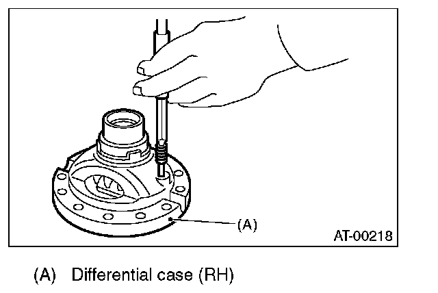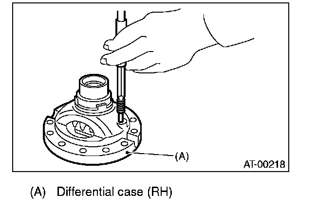 1) Install the washer, differential bevel gear and differential bevel pinion in the differential case (RH). Insert the pinion shaft.