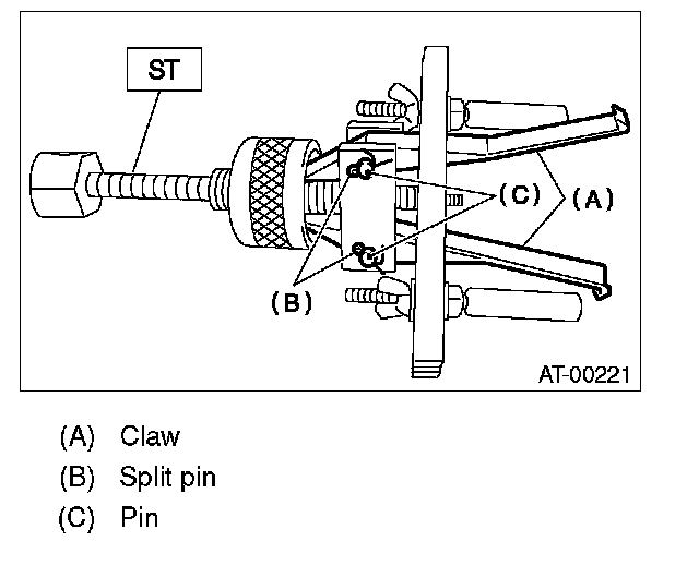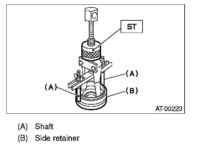 6) Hold the shaft of ST to avoid detachment from the differential side retainer, and remove the bearing outer race.