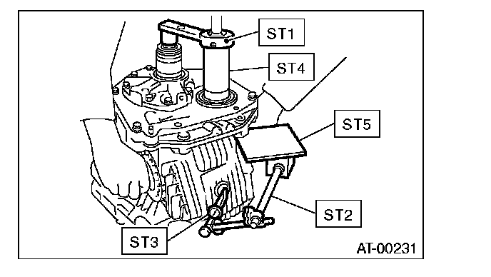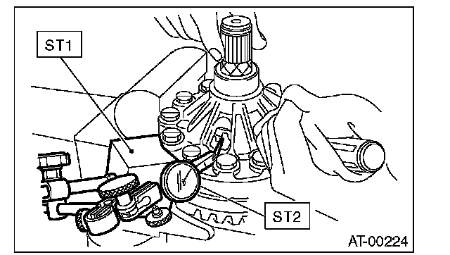 5) Rotate the drive pinion a few times using ST1 and ST2.