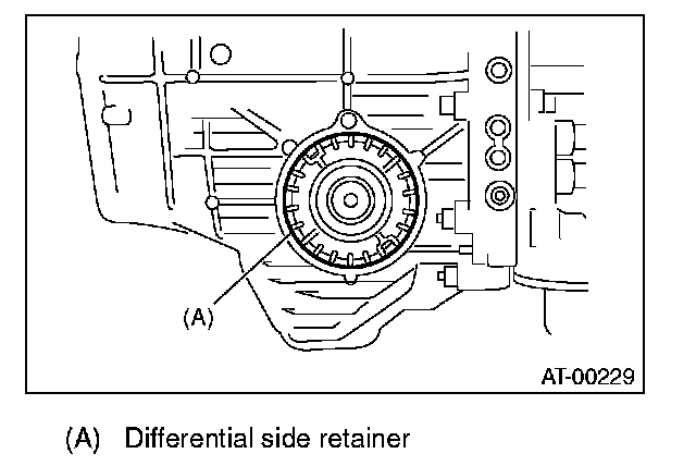 6) Tighten the LH differential side retainer by rotating the shaft until resistance is felt. Then loosen the RH side differential side retainer. Tighten the LH differential side retainer until the pinion shaft no longer turns, and continue to loosen the RH side. This is the "zero" state.