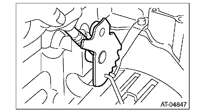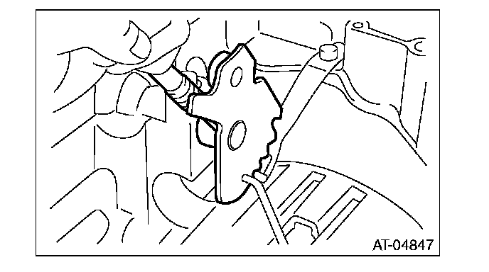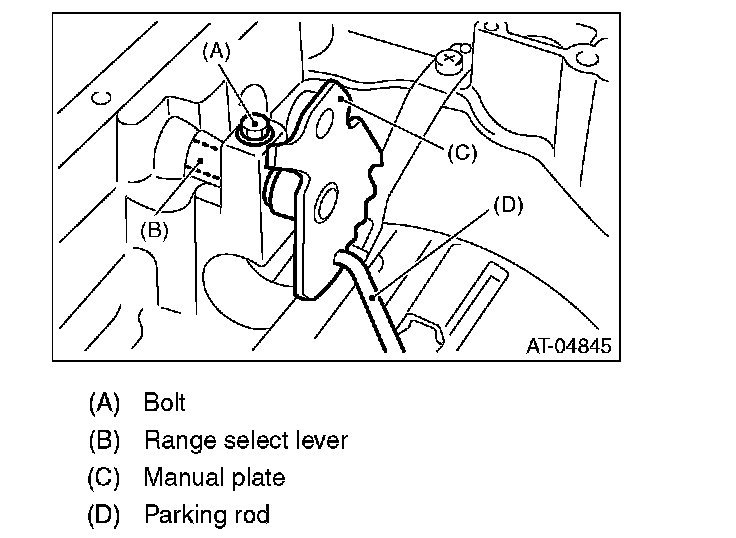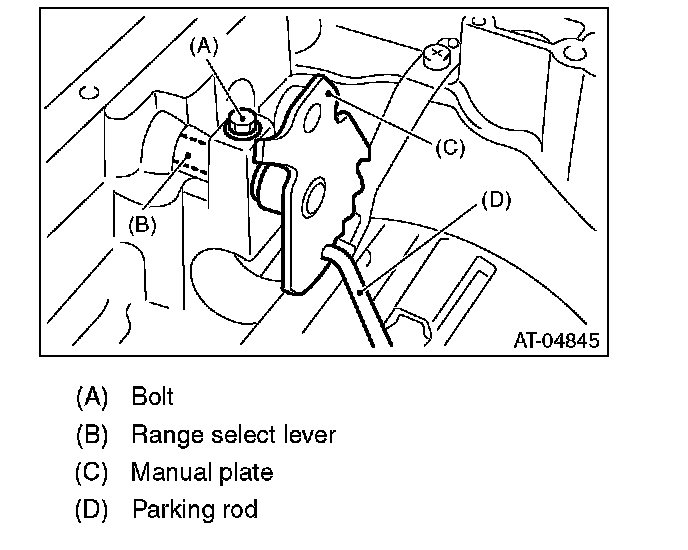12) Remove the bolts securing select lever, and then remove the select lever, manual plate and parking rod.