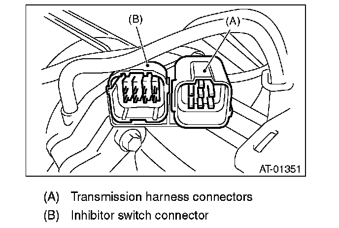 9) Insert the inhibitor switch and transmission harness connector to the stay.