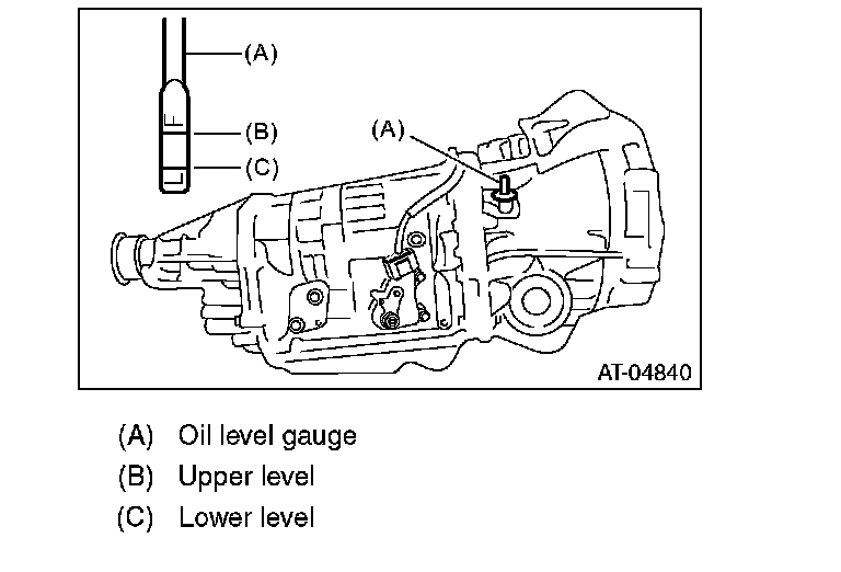 4) Remove the oil level gauge again, and check the level of differential gear oil. If the differential gear oil level is below "L" line, add oil to bring the level up to "F" line.