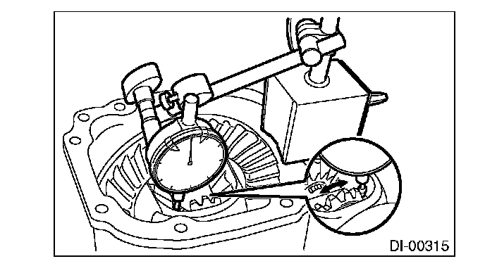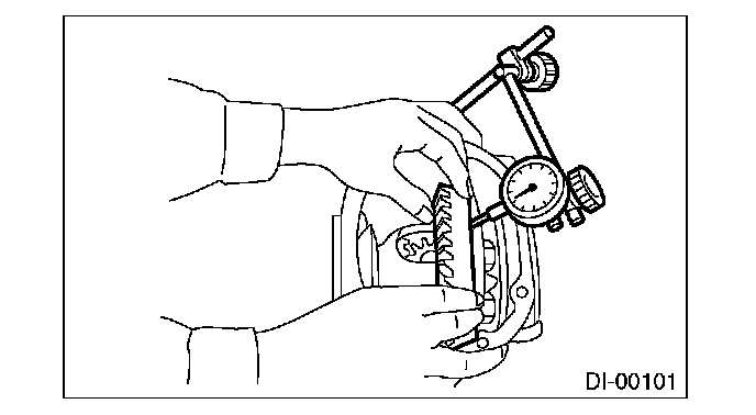 Using a dial gauge, check the backlash of hypoid driven gear.