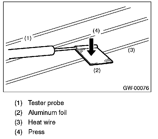 5. Connect the tester probe of positive lead of voltmeter to positive terminal of heat wire and move tester probe of negative lead along the heat wire up to the negative terminal end. If voltage changes from zero to several volts during movement of tester probe, heat wire is open at the voltage change point.