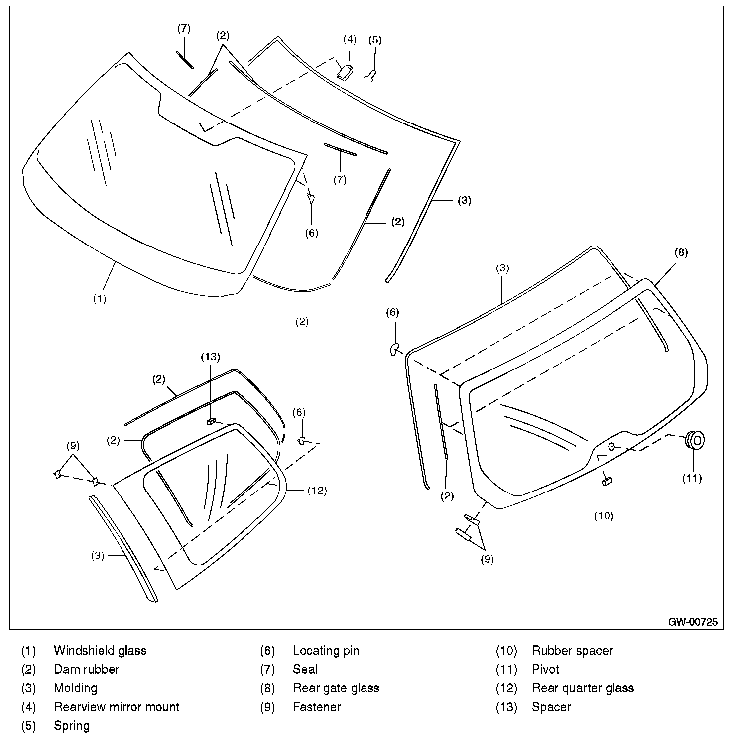 - For minimum drying time and vehicle standing time before driving after bonding, follow instructions or instruction manual from the adhesive manufacturer.
