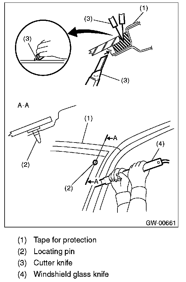 - Cutting of adhesive part shall be started with wider gap between windshield glass and body.